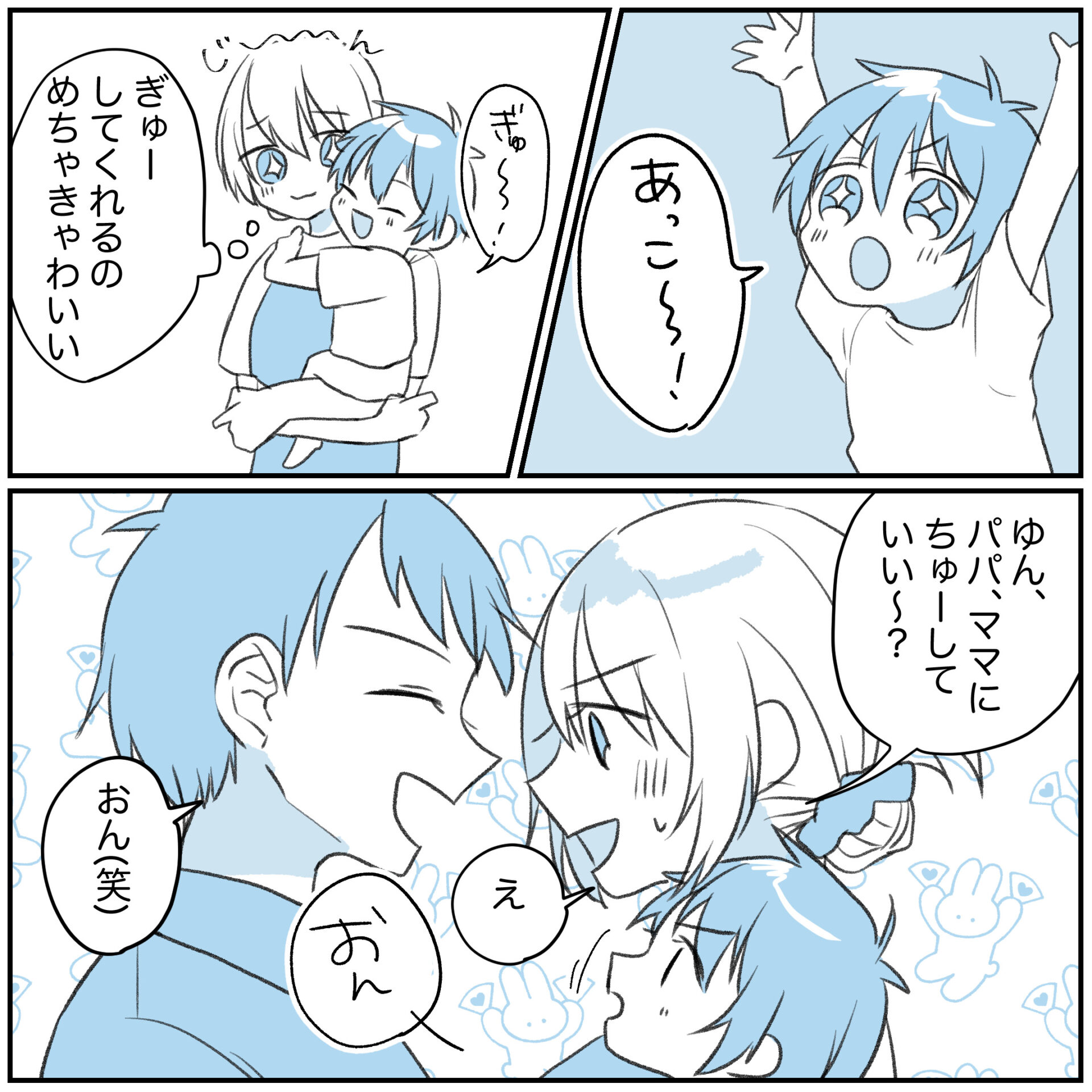 スポンサーリンクおすすめ記事付き添い入院大変でした〜マイコプラズマ③〜付き添い入院大変でした〜マイコプラズマ②付き添い入院大変でした〜マイコプラズマ①3歳になりました飲むのも飲ませるのも下手くそすぎて完ミにした話⑥ 可愛いが止まらない2023.08.04スポンサーリンク本編広告あとがきこのあとパパにもめちゃくちゃちゅーしてくれたもう……もう…可愛すぎる……!!!!!!!!!!!!!!!!!!23年8月現在で2歳半くらいなんですけど、発語も増えてきたし喜怒哀楽もはっきりしてきたし、イヤイヤ期もすごいし偏食もすごいです!!!!笑1