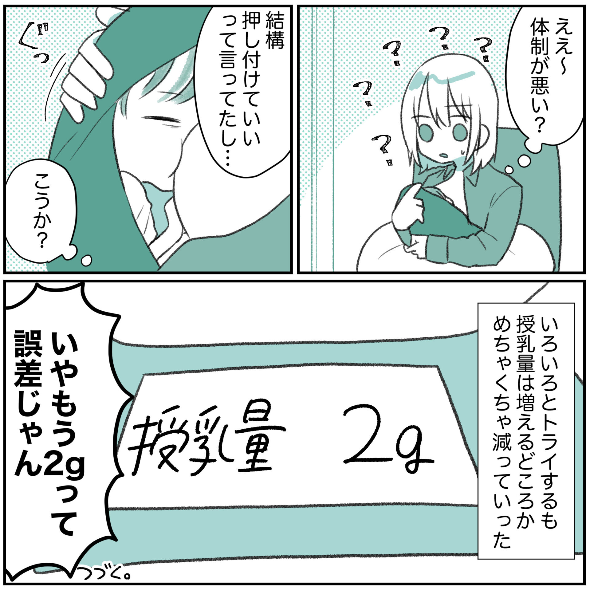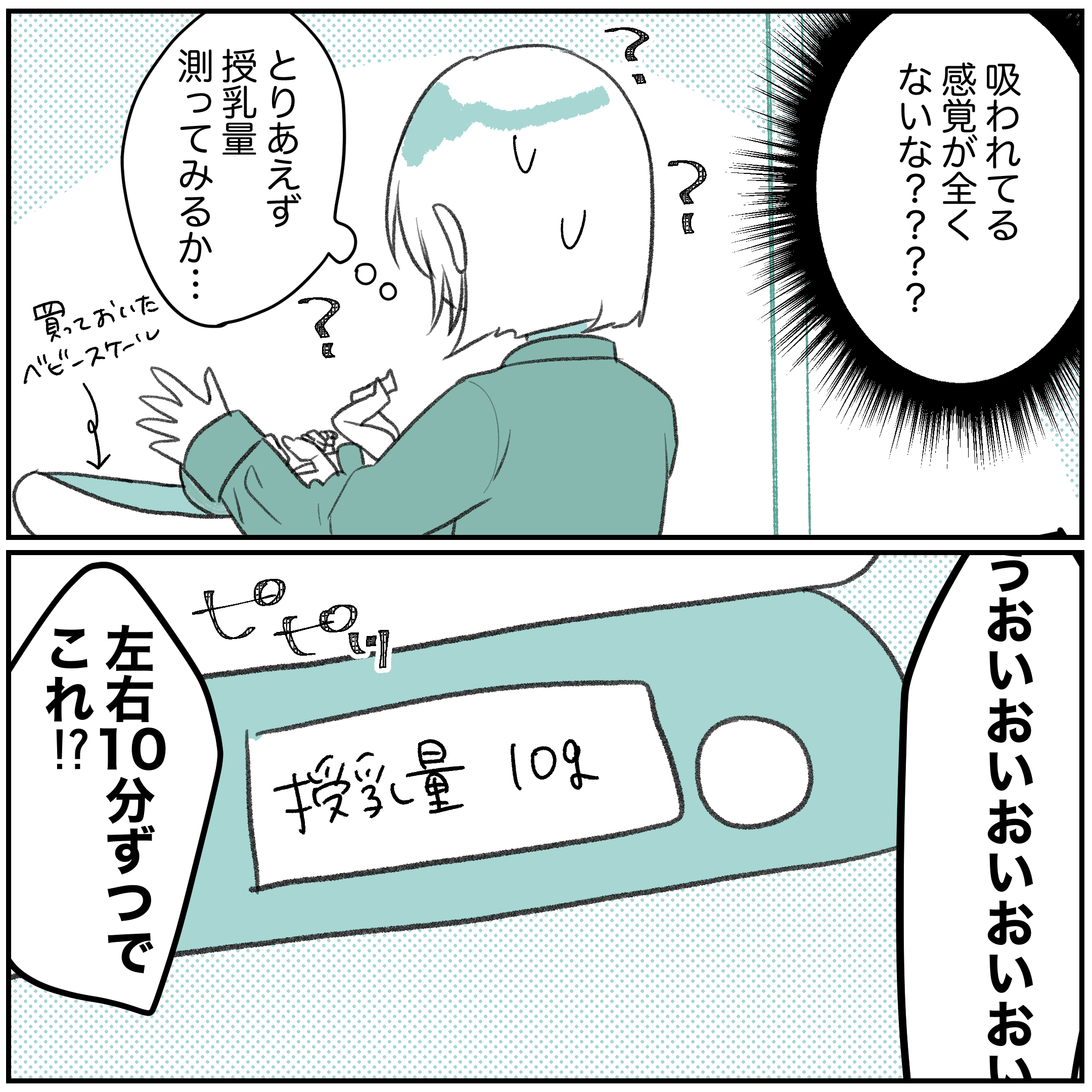 スポンサーリンクおすすめ記事付き添い入院大変でした〜マイコプラズマ③〜付き添い入院大変でした〜マイコプラズマ②付き添い入院大変でした〜マイコプラズマ①3歳になりました飲むのも飲ませるのも下手くそすぎて完ミにした話⑥ 飲むのも飲ませるのも下手くそすぎて完ミにした話②2023.09.11スポンサーリンク広告あとがきお久しぶりの完ミ話です!!!!感覚バカだった私も「ここまでやると痛い」を覚えたのと、搾乳と実際に吸われるのとではやっぱり違うようで、授乳を何度か体験するうちに「このまま続けるのはきついかもしれない」と思うようになりました。なんか搾乳で出血した時よりヒリヒリするんですよね〜唾液のせい?出血しなかったのに…とまあそんな流れで乳頭保護器を導入、したものの…ぜんっっっっっぜん飲まないじゃん!?!?!?!と戸惑うことに…。2gて空気吸ったんか?みたいな量じゃん…1
