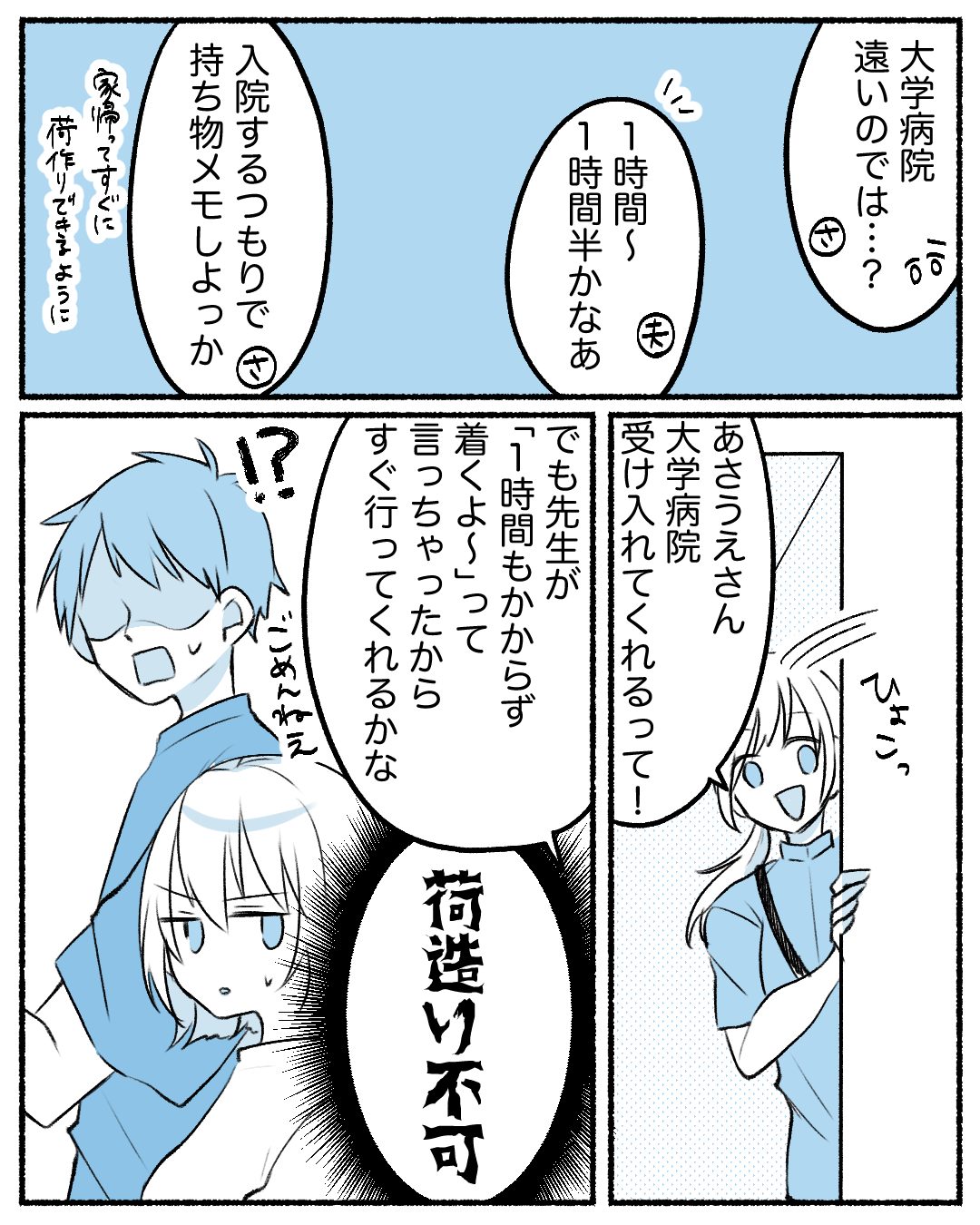 とりあえずそんなこんなでめちゃ遠い大学病院で入院になってしまいました。これもあってもっと早く判断すればよかったと後悔してしまいました…落ち着いた頃にあれこれやればよかったと反省してしまいますね…まさに後の祭りだ…